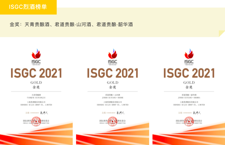 金奖:天青贵酿酒、君道贵酿·山河酒、君道贵酿·韶华酒